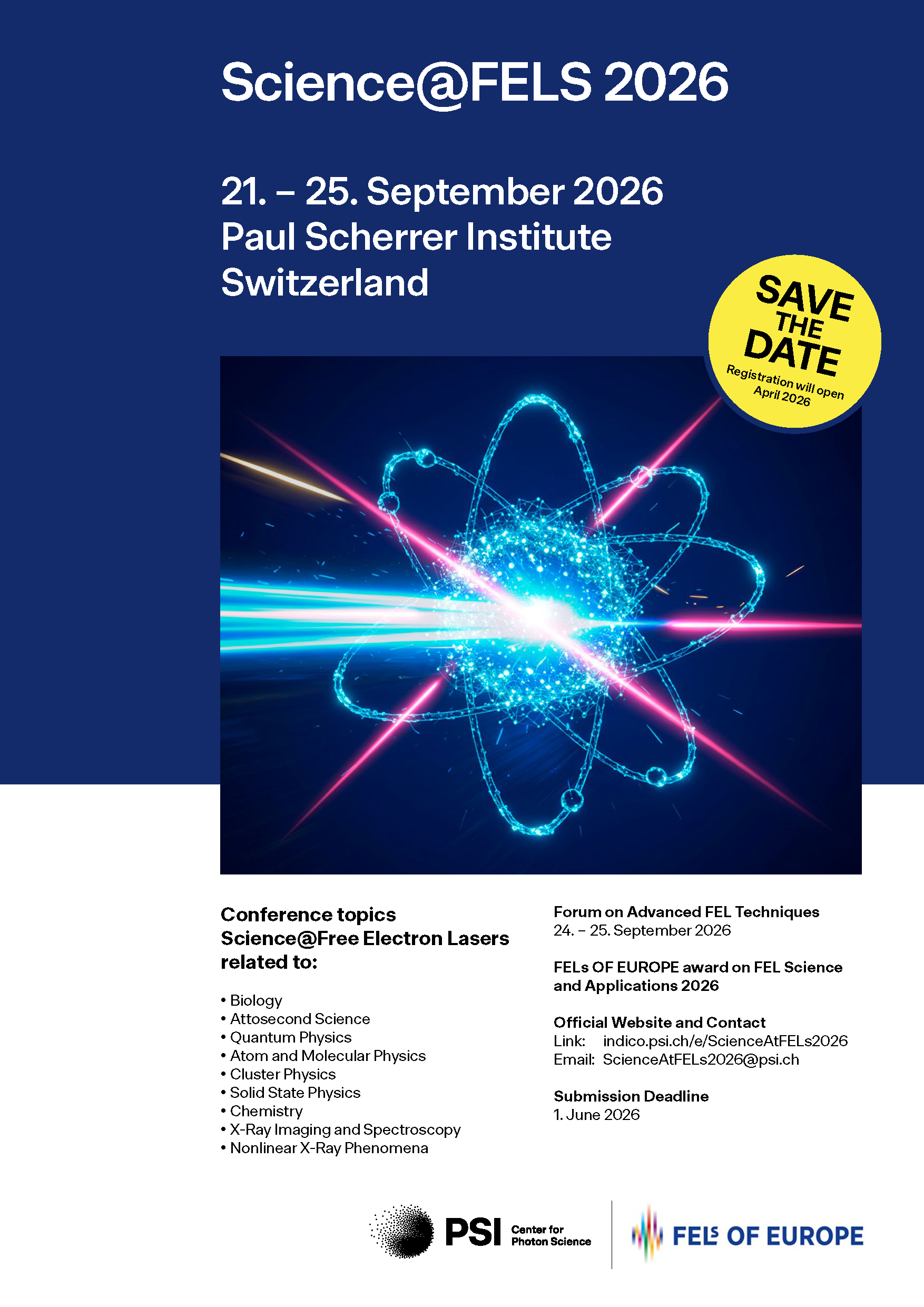 The conference additionally features the “FELs of EUROPE award on FEL Science and Applications 2026”.