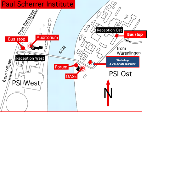 The workshop will be held in the Auditorium of the Paul Scherrer Institut (PSI) in Villigen. PSI is located in northern Switzerland, approximately midway between Zürich and Basel. The nearest towns and railway stations are Baden and Brugg.